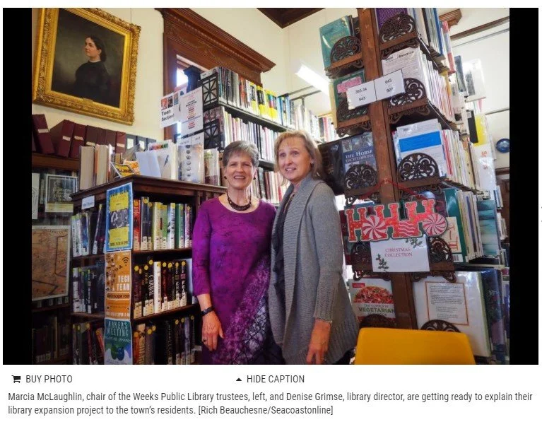 Anderson said a public hearing has been scheduled for Jan. 9 before the Budget Committee decides whether to recommend the library article. For information, call the library at (603) 436-8548 stop by at 36 Post Road or visit weekslibrary.org.