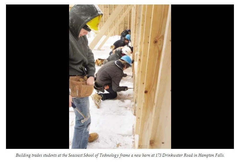 HAMPTON FALLS — Setting aside their notebooks and pencils, students in Jim Klingensmith’s class at the Seacoast School of Technology are picking up their tool belts and saws for this project.